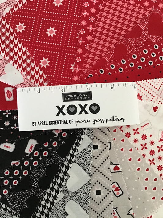 XOXO Charm Pack by April Rosenthal of Prairie Grass Patterns for Moda Fabrics, Valentine-Inspired Charm Pack