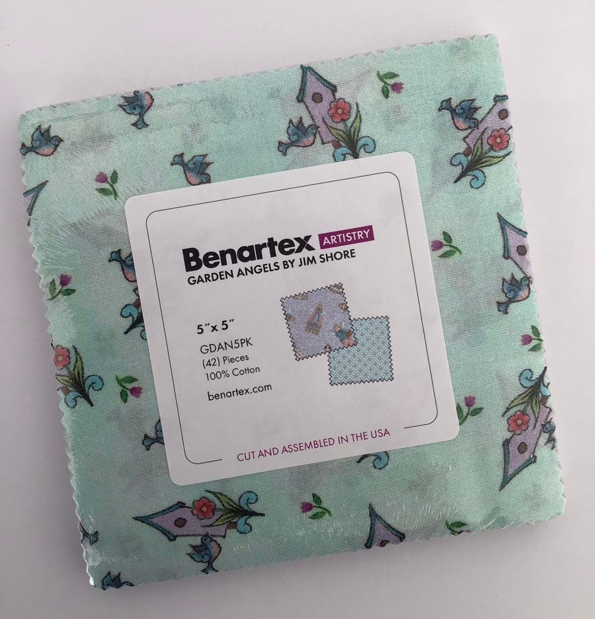 Garden Angels Charm Pack by Jim Shore for Benartex, (42) 5" Precut Cotton Quilt Squares, 100% Cotton Charm Pack. Depending on the number of prints in the collection, there will be duplicates of some of the prints.
