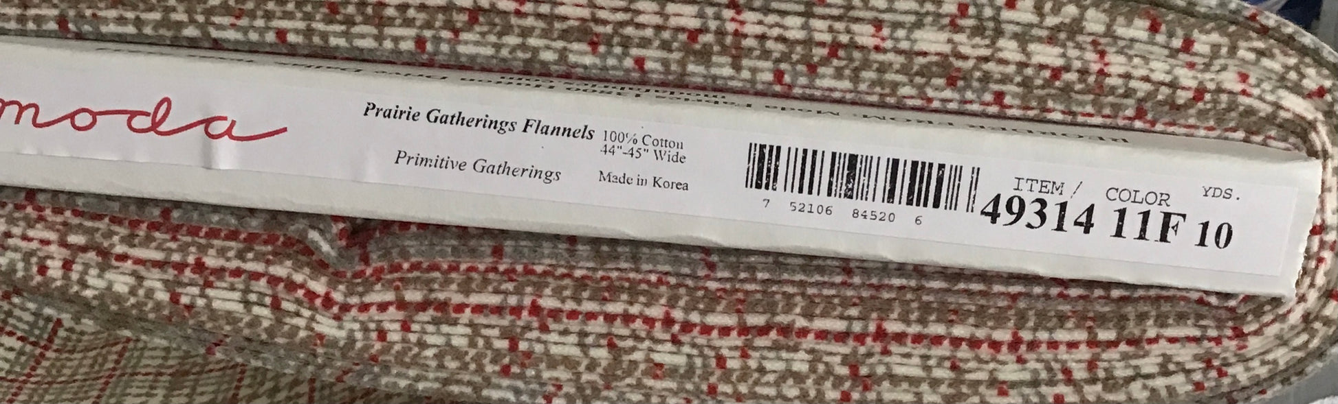 Prairie Gatherings Flannel by Primitive Gatherings for Moda Fabric, Porcelain & Red, sold by the Yard, Cut in One Continuous Cut, 49314 11F