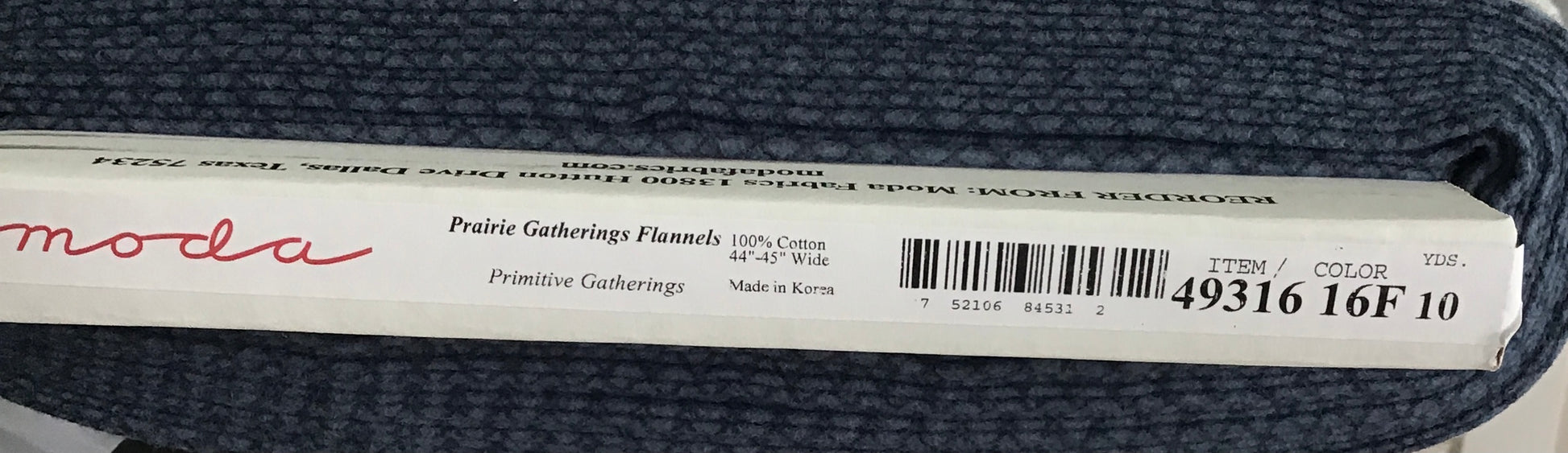 Prairie Gatherings Flannel by Primitive Gatherings for Moda Fabric, Indigo Wire Mesh, sold by the Yard, One Continuous Piece, 49316 16F