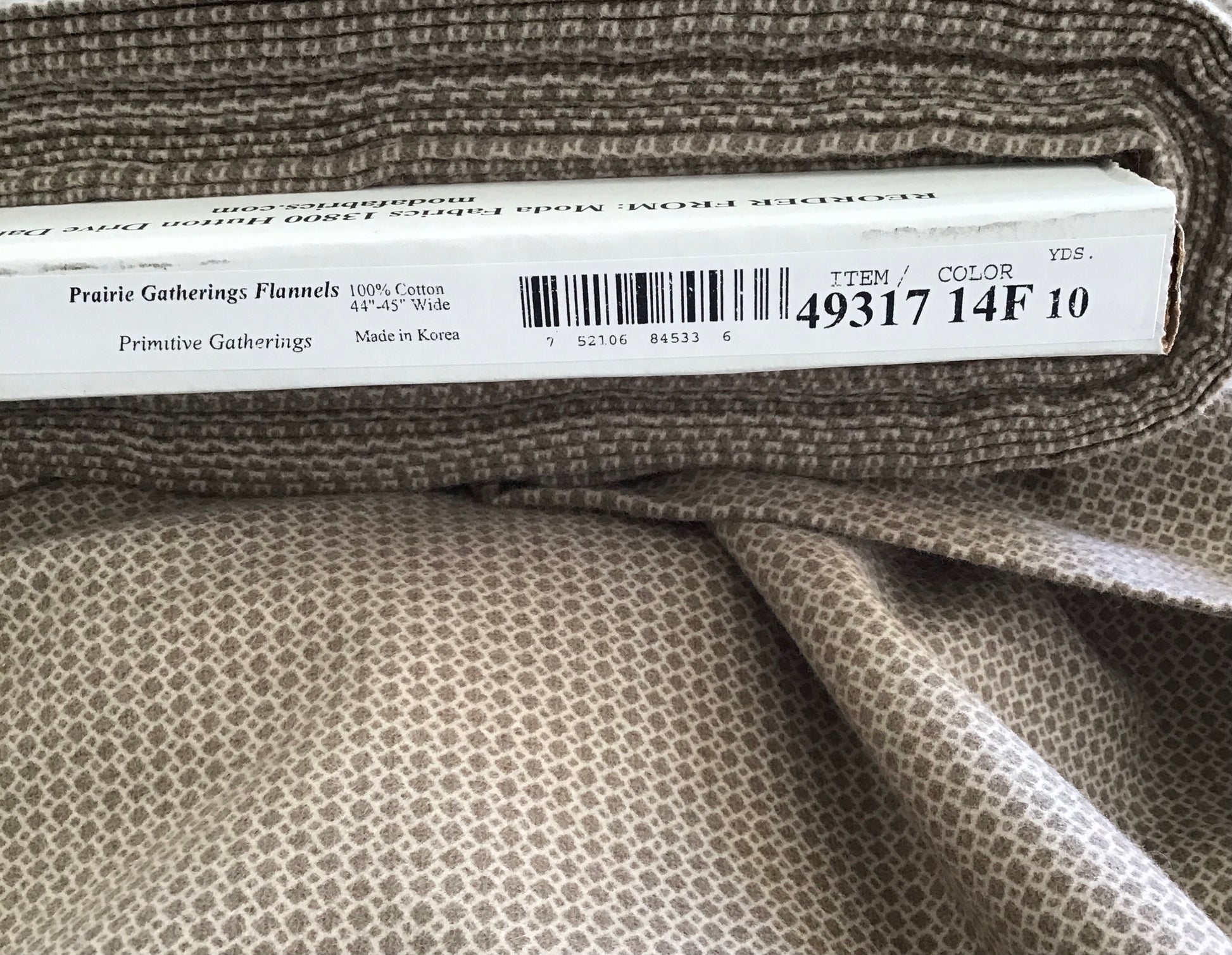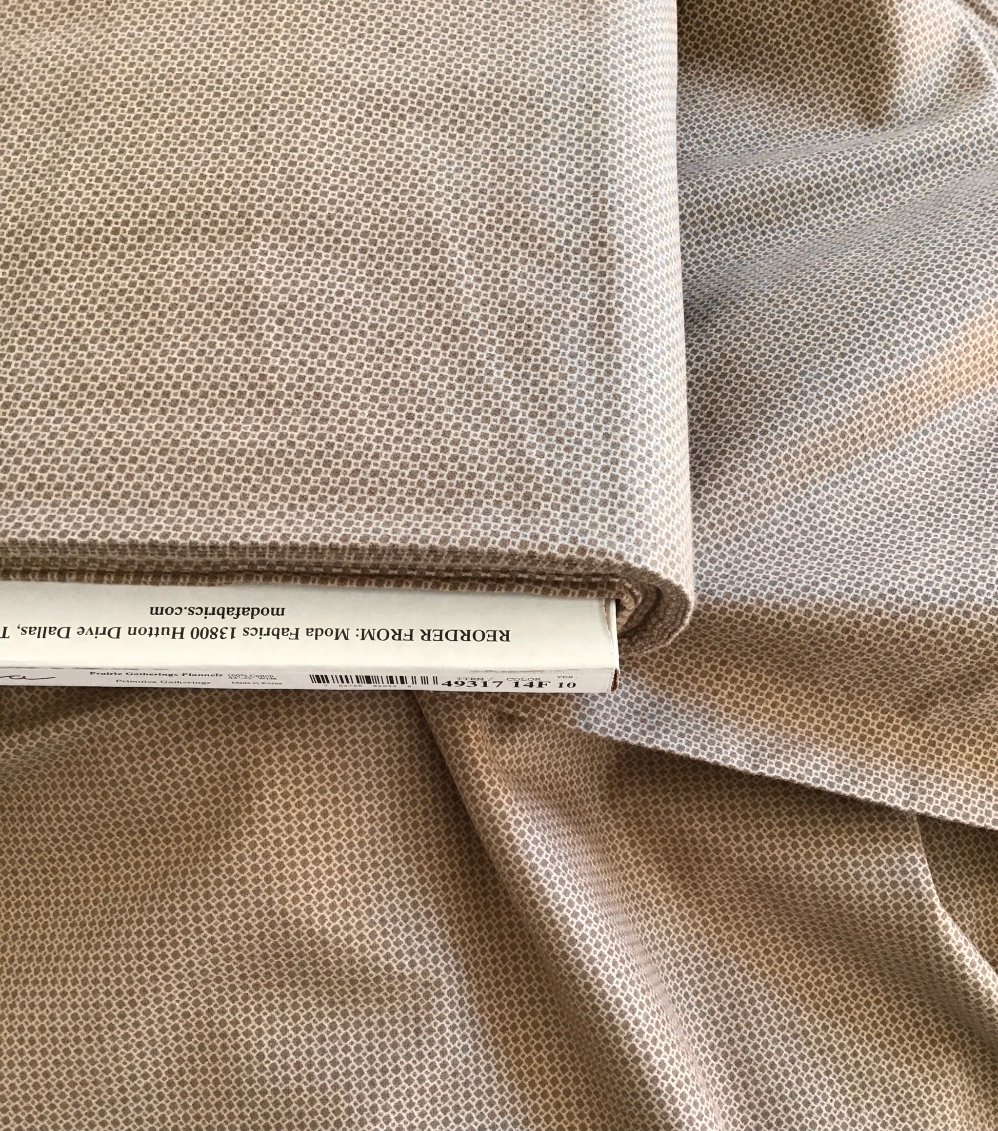 Prairie Gatherings Flannel by Primitive Gatherings for Moda, Teak Box Print sold by the Yard, Cut in One Continuous Piece, 49317 14F.