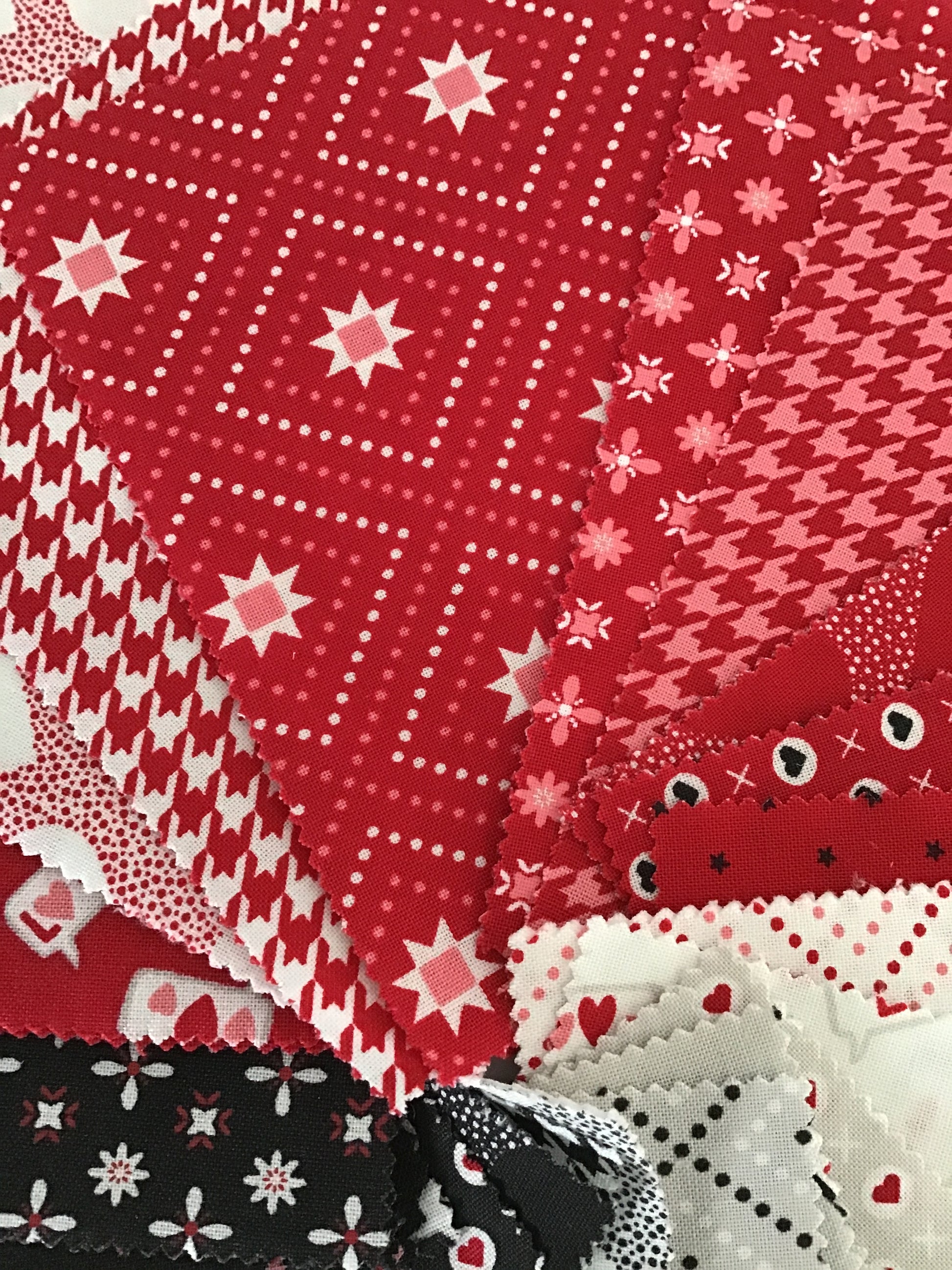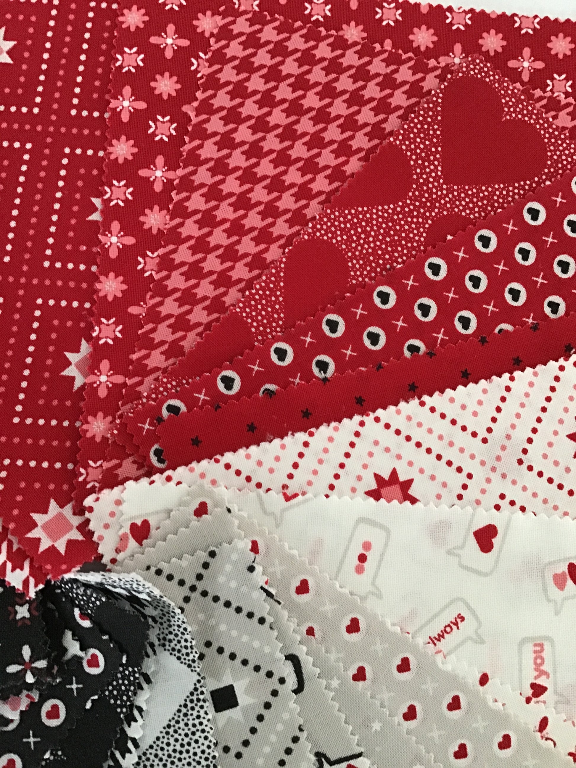 XOXO Charm Pack by April Rosenthal of Prairie Grass Patterns for Moda Fabrics, Valentine-Inspired Charm Pack
